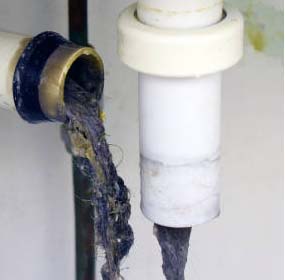 Backed-up sinks, tubs, or showers, particularly when using other fixtures